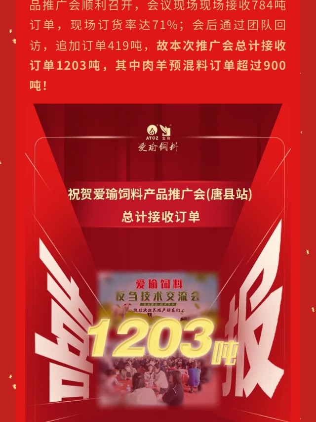喜報(bào) | 愛瑜飼料產(chǎn)品推廣會(huì)(唐縣站)總計(jì)接收訂單1203噸!